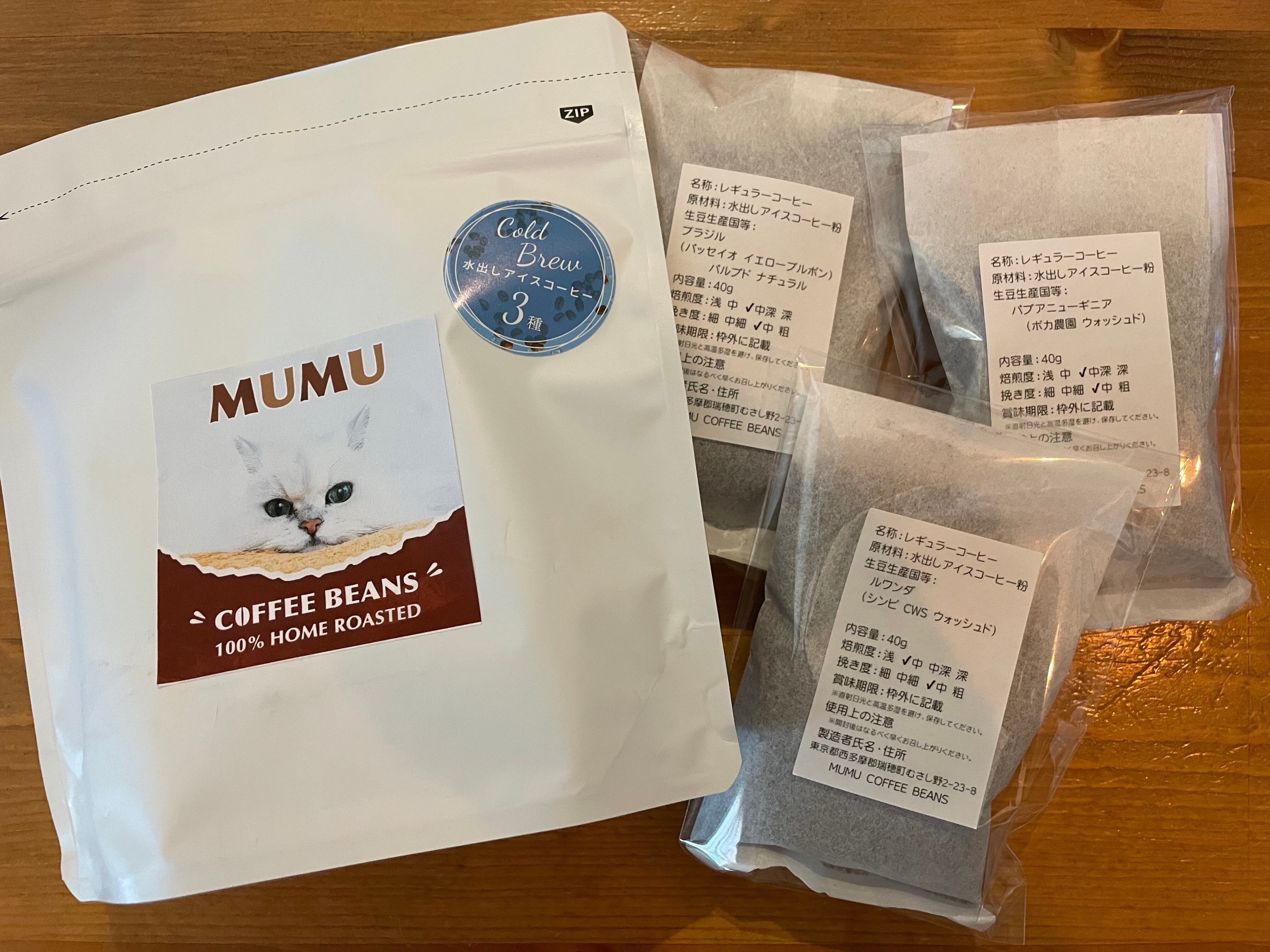 ポットで簡単に作れる水出しアイスコーヒーのパック3種セットになります。